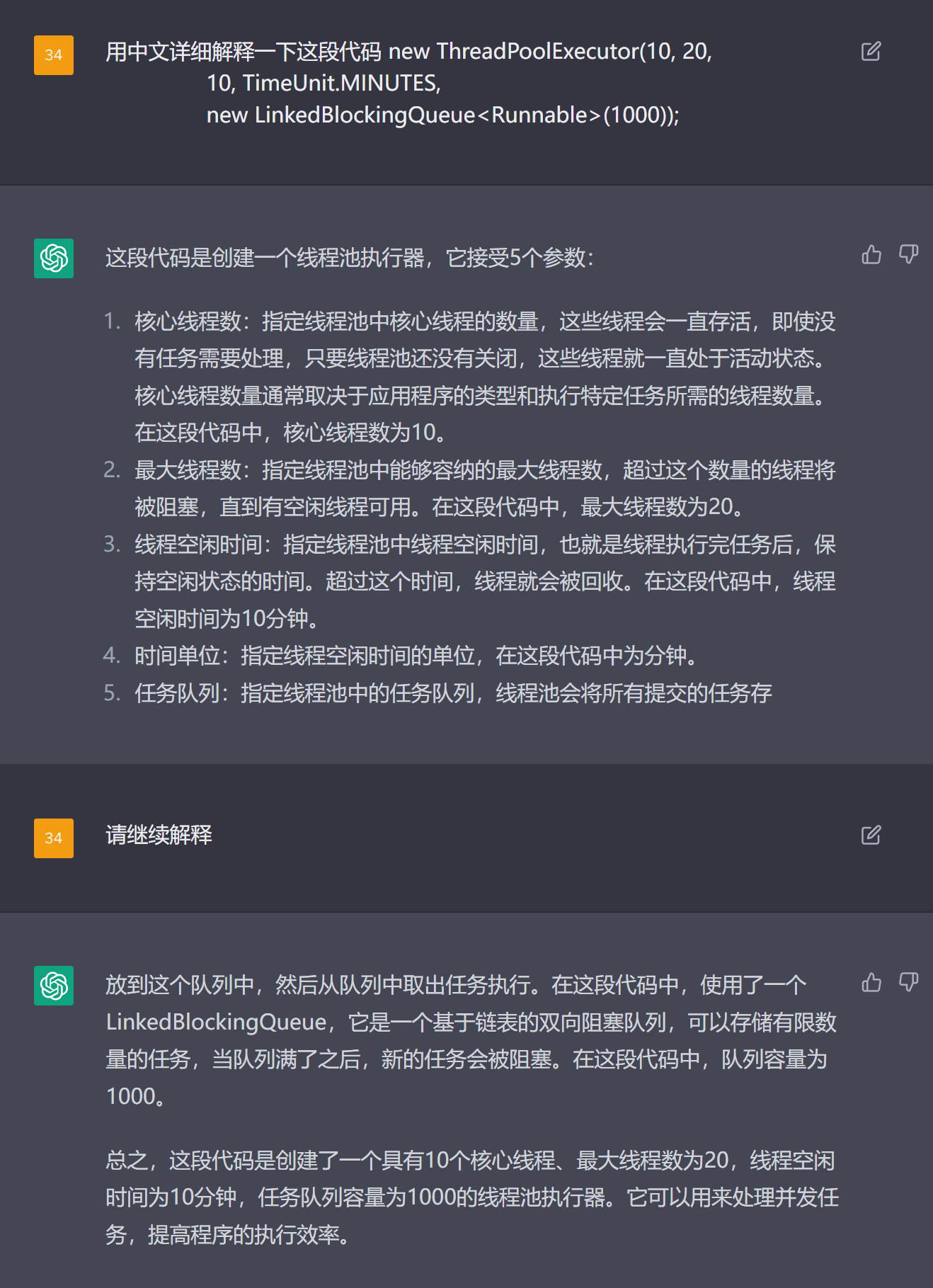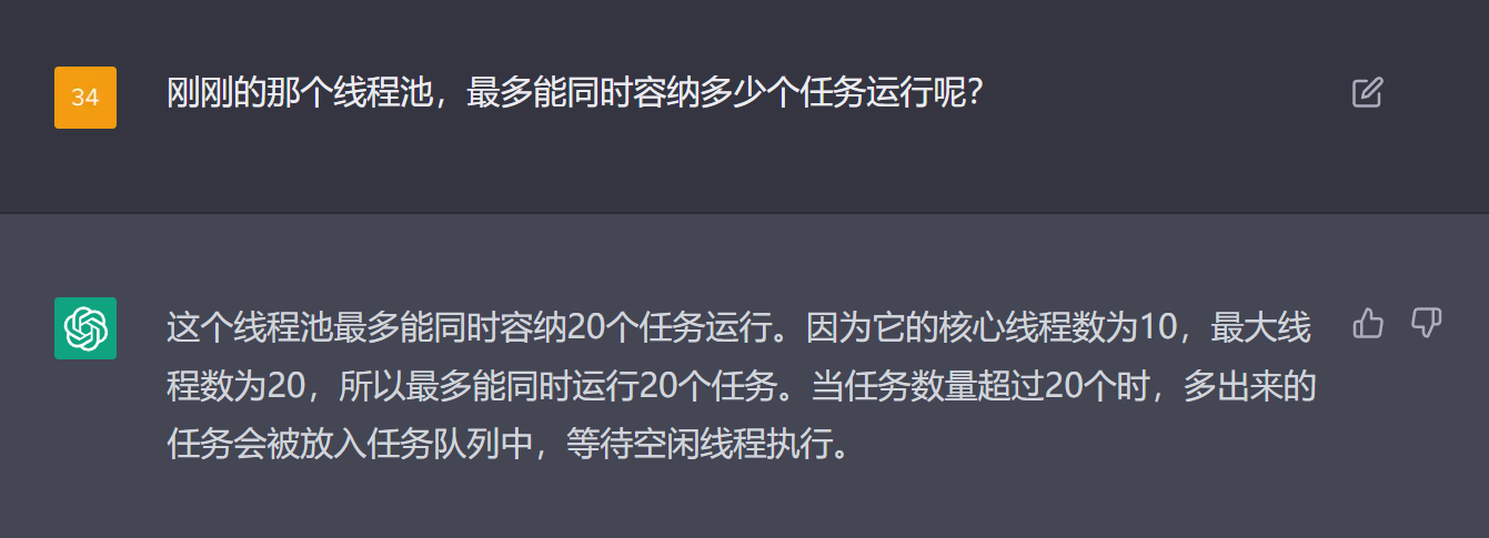 他说:当任务数量超过 20 个时,多出来的任务会被放入任务队列中,等待空闲线程执行。