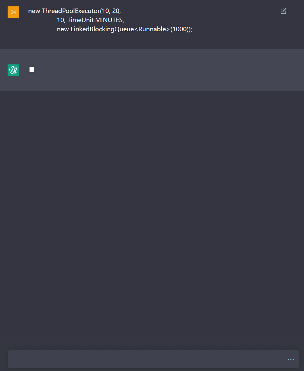 比如先给它一个线程池,它卡顿几秒之后,就哐哐哐一顿输出了: