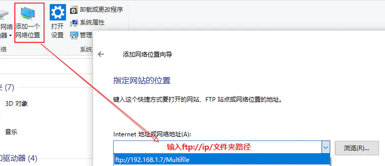 然后在电脑中使用添加一个网络位置输入ftp路径就可以了: