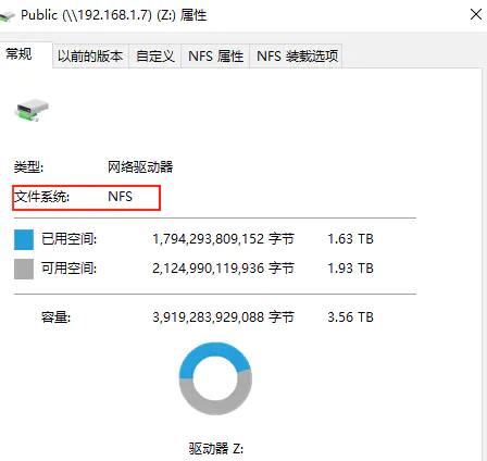 点击属性就可以看到这个是NFS共享的了: