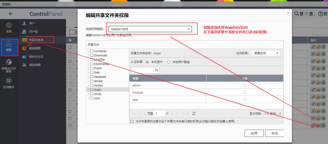 编辑共享文件夹权限: