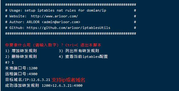 这个脚本是帮你一键执行iptables命令,还是调用iptables,非第三方转发软件,支持ddns,感谢arloor