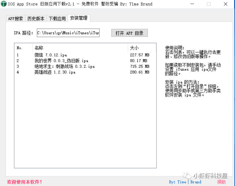下载完成之后,如图所示来到安装管理界面,先阅读安装ipa方法,再点击打开app目录,操作即可。