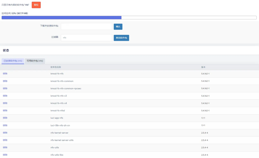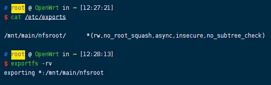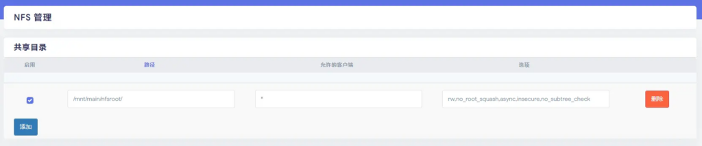 如果 OpenWrt 没有图形界面,或未安装 NFS 管理的 LuCI APP,则修改/etc/exports