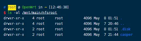 将其上传到 OpenWrt 的/mnt/main/nfsroot 目录。