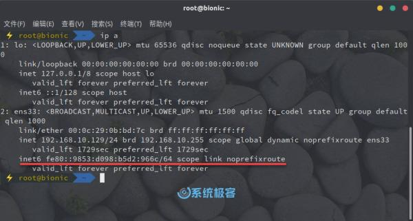 1.在「终端」中执行以下命令——查看IPv6是否已经启用:ip a
