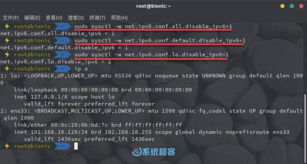 注意:上述方法只是在Ubuntu系统中临时禁用了IPv6协议,重启后系统会自动再次启用IPv6。