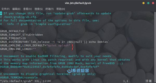 1.使用VIM或Nano等文件编辑器编辑/etc/default/grub 配置文件