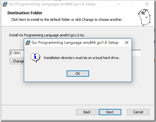 If you chose a directory other than c:\Go, you must set the GOROOT environment variable to your chosen path.