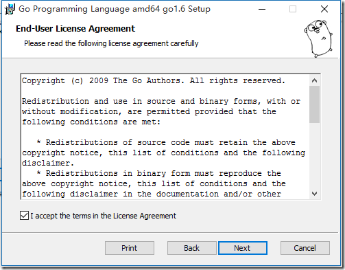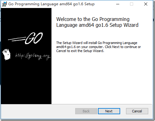 下载完成之后,双击go1.6.windows-amd64.msi进行安装。