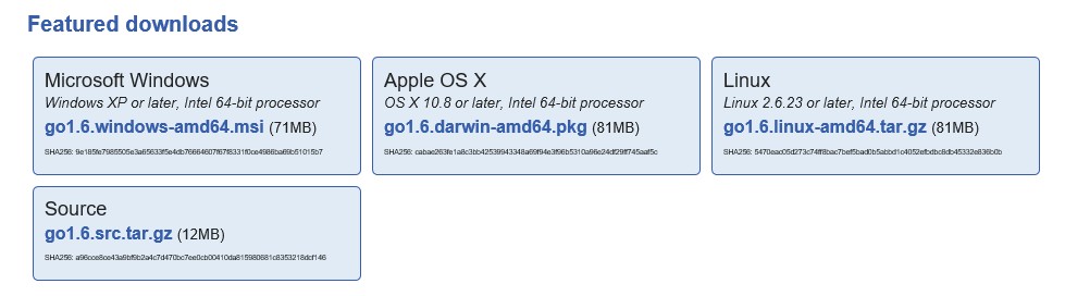 找到适合你系统的版本下载,本人下载的是windows版本。也可以下载Source自己更深层次研究go语言。